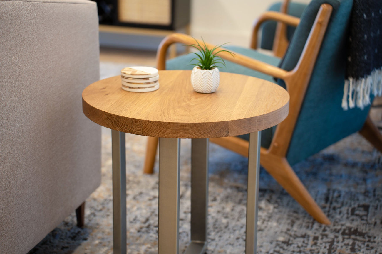 Our Round Solid Wood End Tables come with a variety of customizable options, available in walnut, maple and white oak. Our unique wood grain ensures you get a one-of-a-kind piece that is sure to be a great addition to any living room. Knotholes, voids, and cracks on the surface are filled to bring out the natural beauty of the piece. With a wide selection to choose from, you can choose the perfect end table to fit your space.