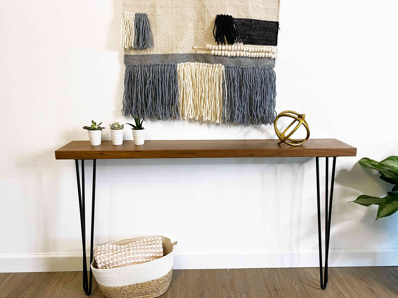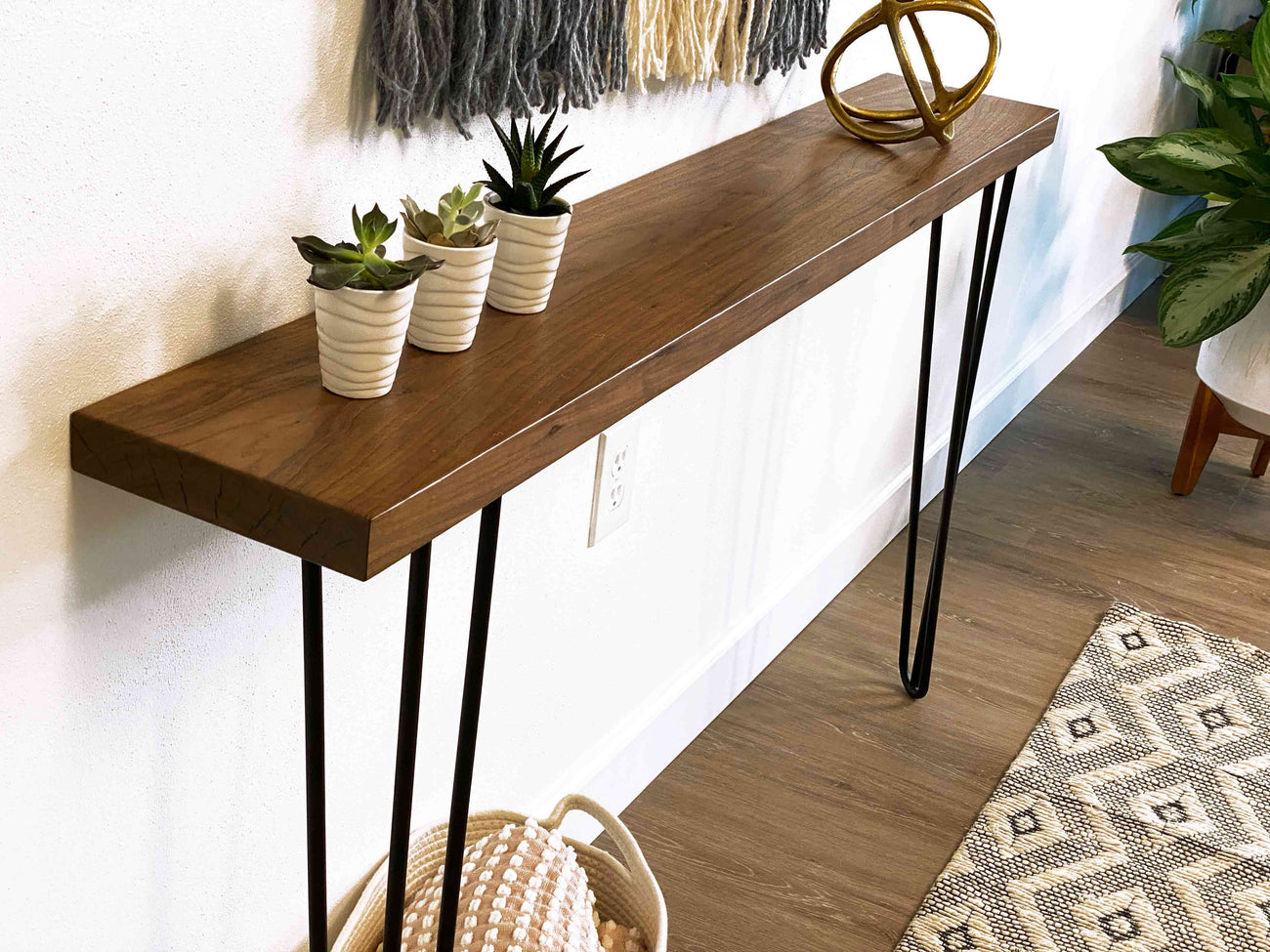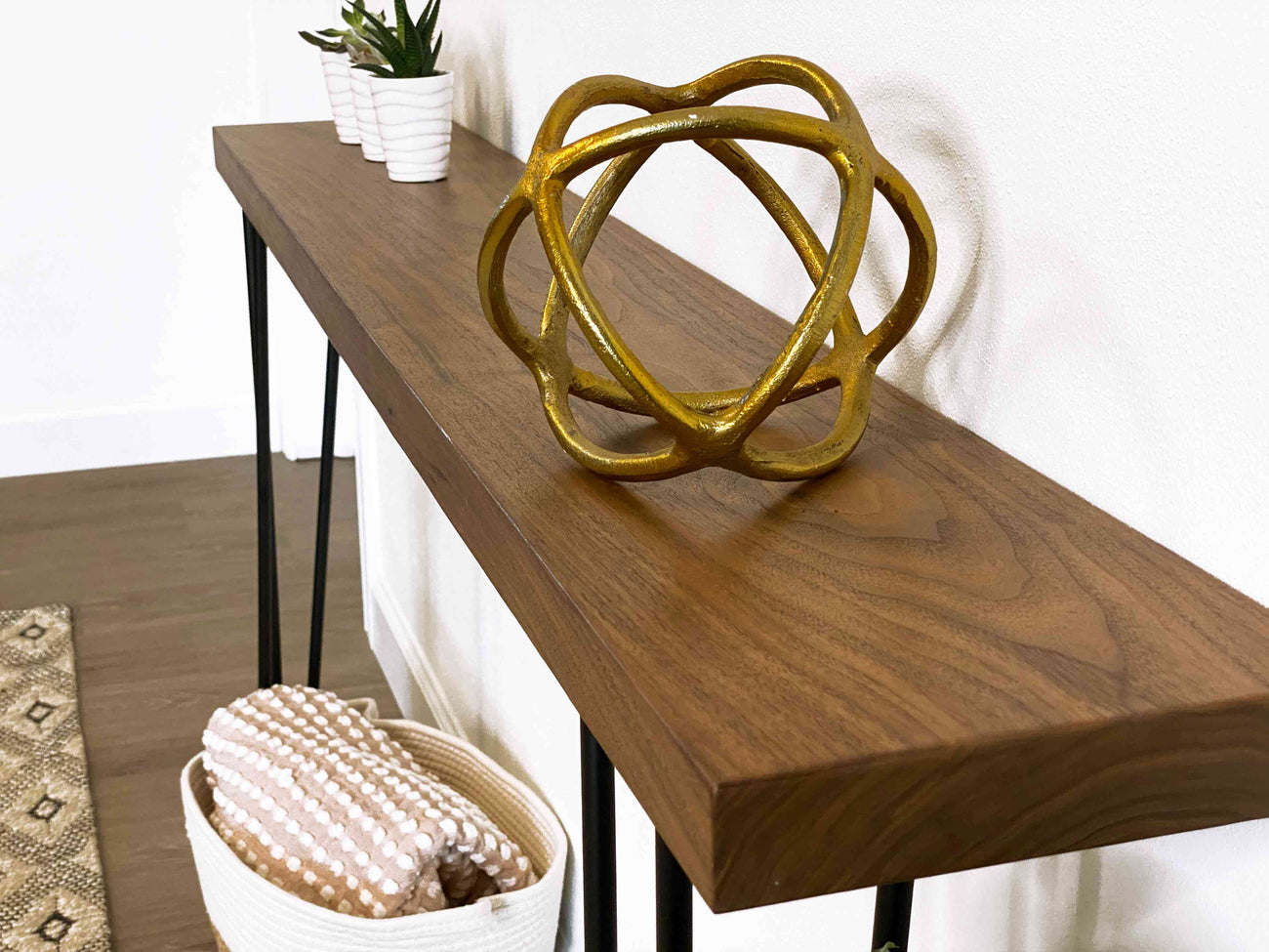 Want a sofa table for your living room? Our skinny console table can be mounted to walls anywhere in your home, so they are great as a long narrow table for tight spaces.