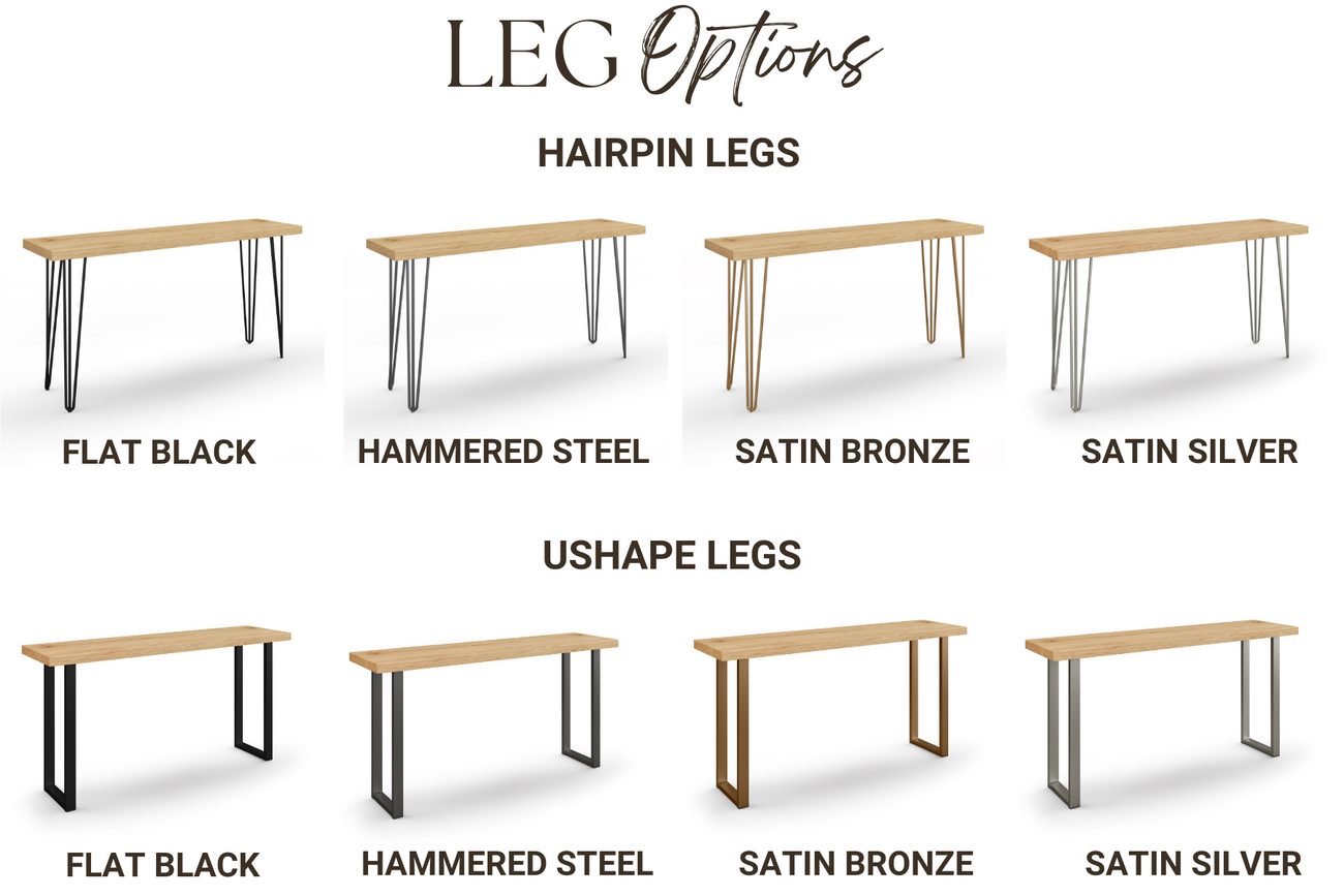 Made from solid maple this console table is sturdy and has gorgeous wood grain. Great for a variety of spaces like a narrow console table, in the entryway, under a window or behind a sofa. Pick from mid century modern hairpin legs or U Shape for a more modern look. All of our tables are handcrafted in the heart of the Ozarks with superior quality materials.
