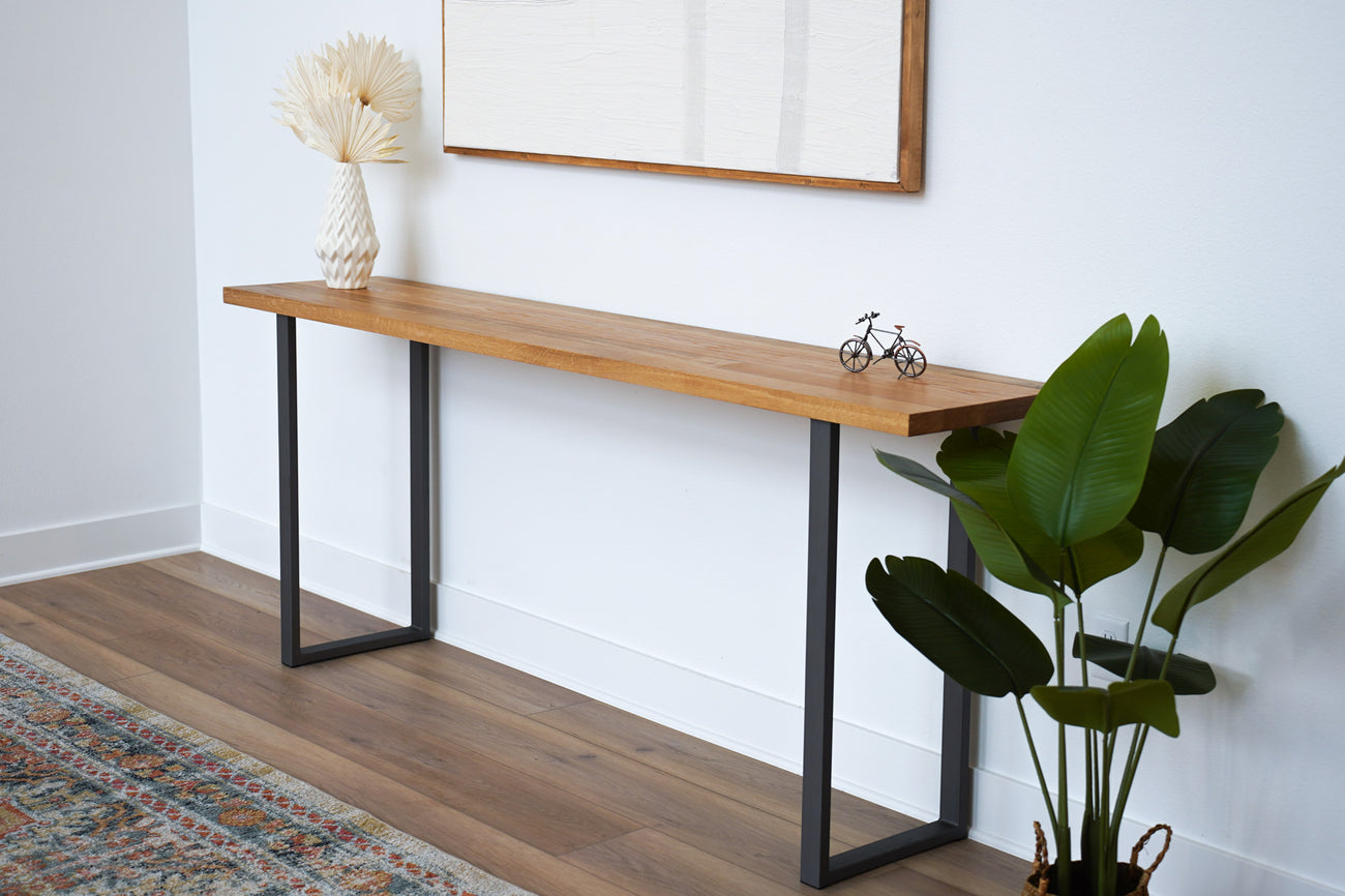 I’m moving tomorrow and bought the beautiful white oak console table to set behind my sofa with 3 stools in my new home. I don’t have pics yet, but I’m very pleased with the product
