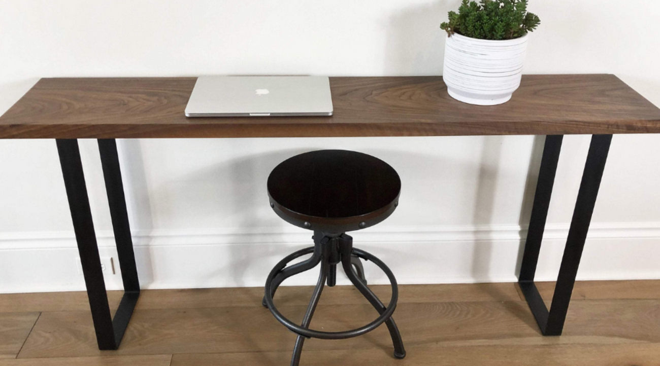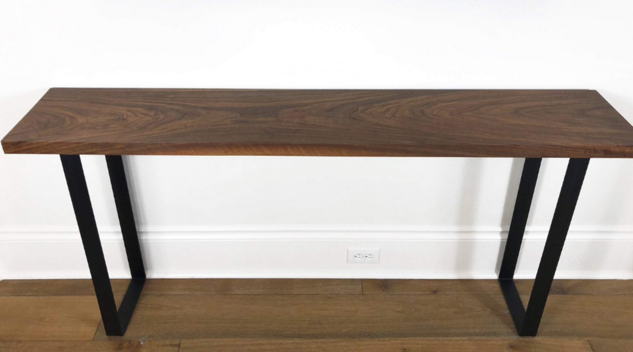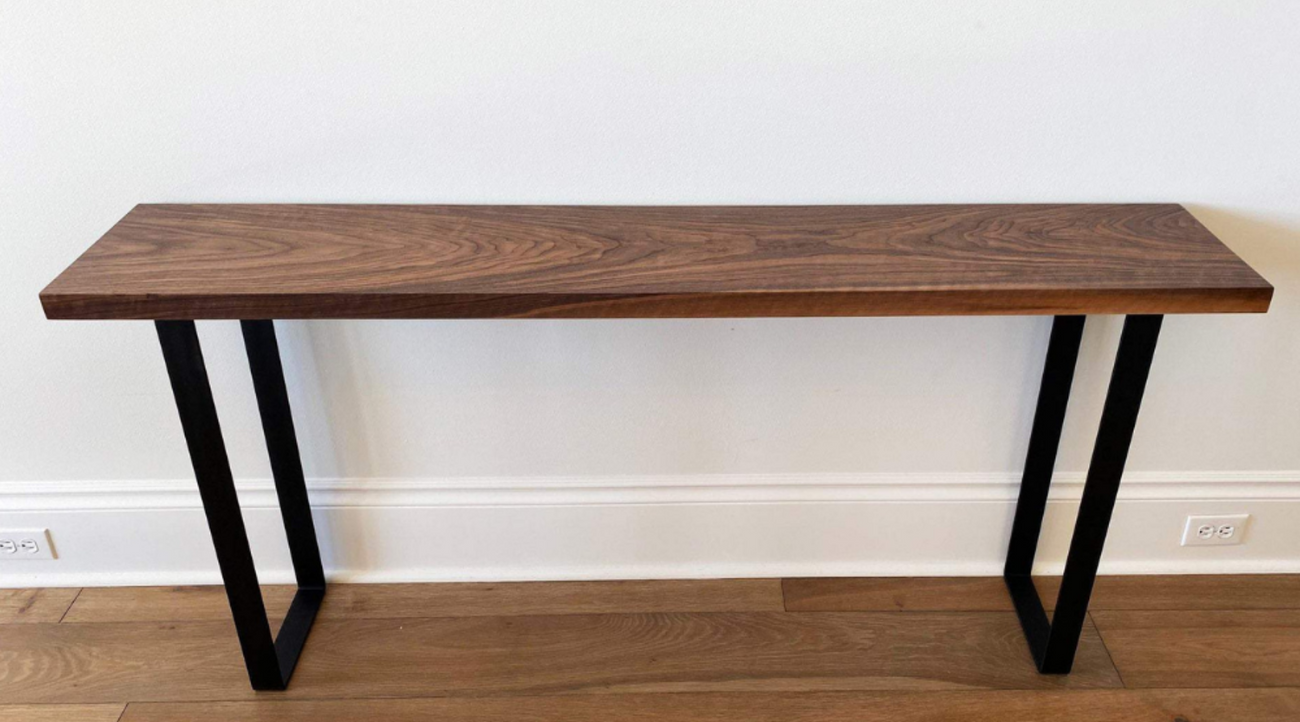This narrow console table is made from one piece of solid premium black walnut. It is very sturdy and has
