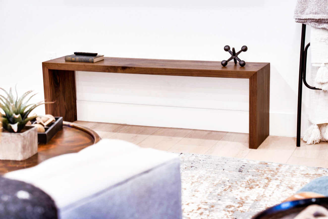 Bring home the beauty of nature with our handmade modern waterfall bench. Crafted in solid black walnut, white oak or maple suiting a range of interiors from modern, boho, to industrial. Made in the USA, this is a sturdy, stylish heirloom piece that will last – and be loved – for generations.