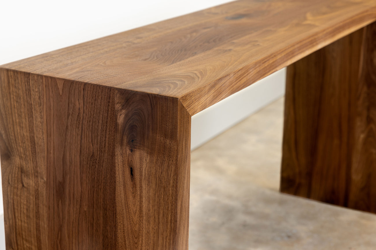 Bring home the beauty of nature with our handmade modern waterfall console table. Crafted in solid black walnut, white oak or maple suiting a range of interiors from modern, boho, to industrial. Made in the USA, this is a sturdy, stylish heirloom piece that will last – and be loved – for generations.