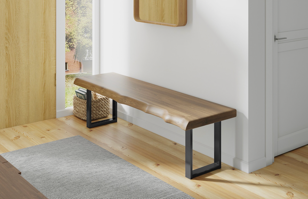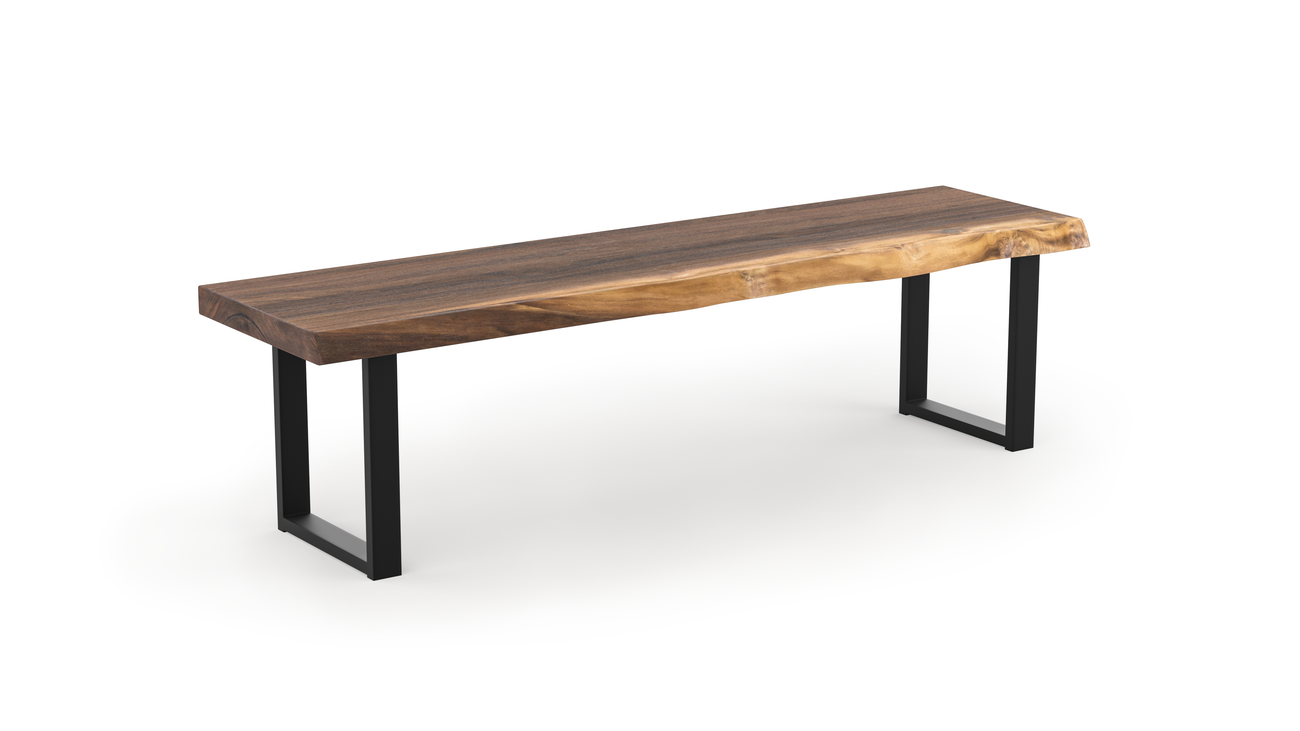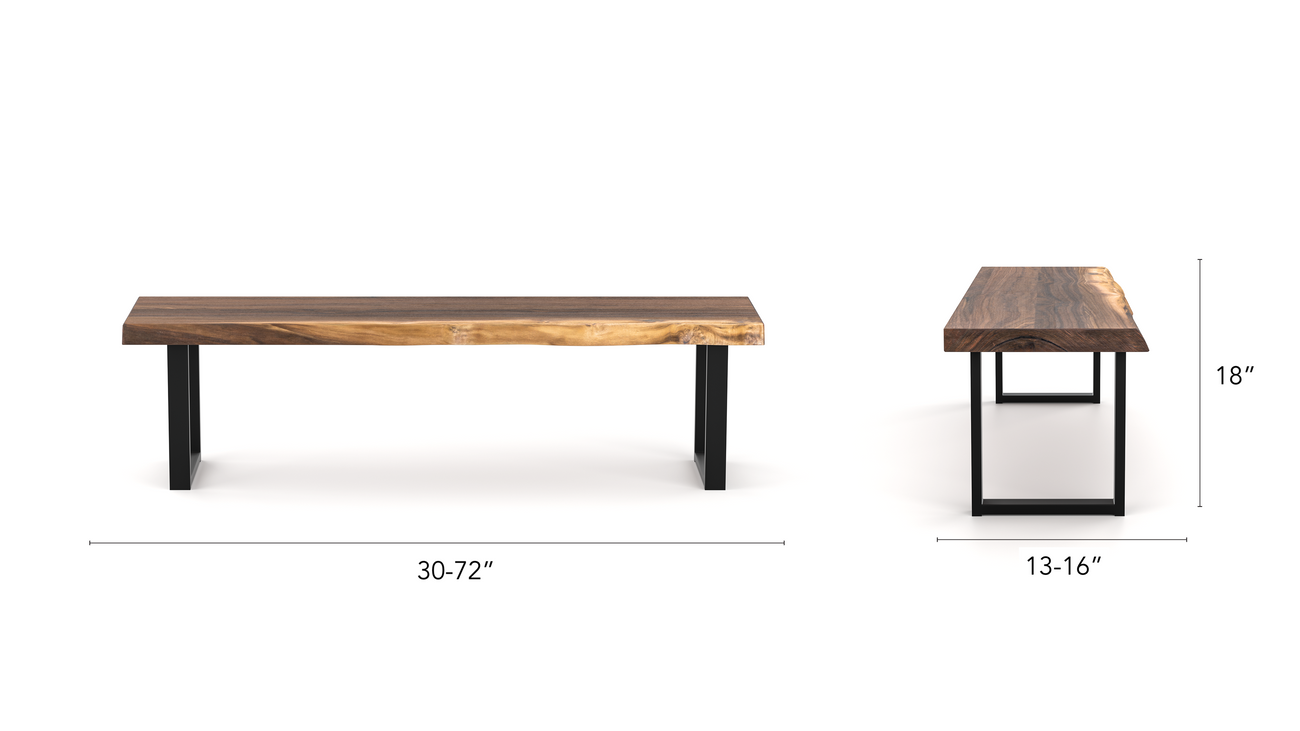 Bring home the beauty of nature with our handmade live edge bench. Our beautiful benches are handcrafted from Live Edge Walnut slabs and will add a warm feel and clean aesthetic to any space. Customize your size and style with the available product options. 100% Natural Live Edge Solid Black Walnut