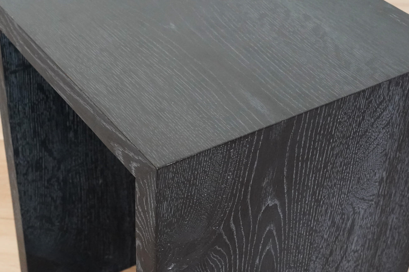 This modern black waterfall end table is a timeless piece for any home. The elegant lines and stunning grain of the wood will add a touch of sophistication to any room in your home. Knotholes, voids, and cracks on the surface are filled to bring out the natural beauty of the piece. Perfect as a night stand or accent table, this American made end table is designed to stand the test of time.