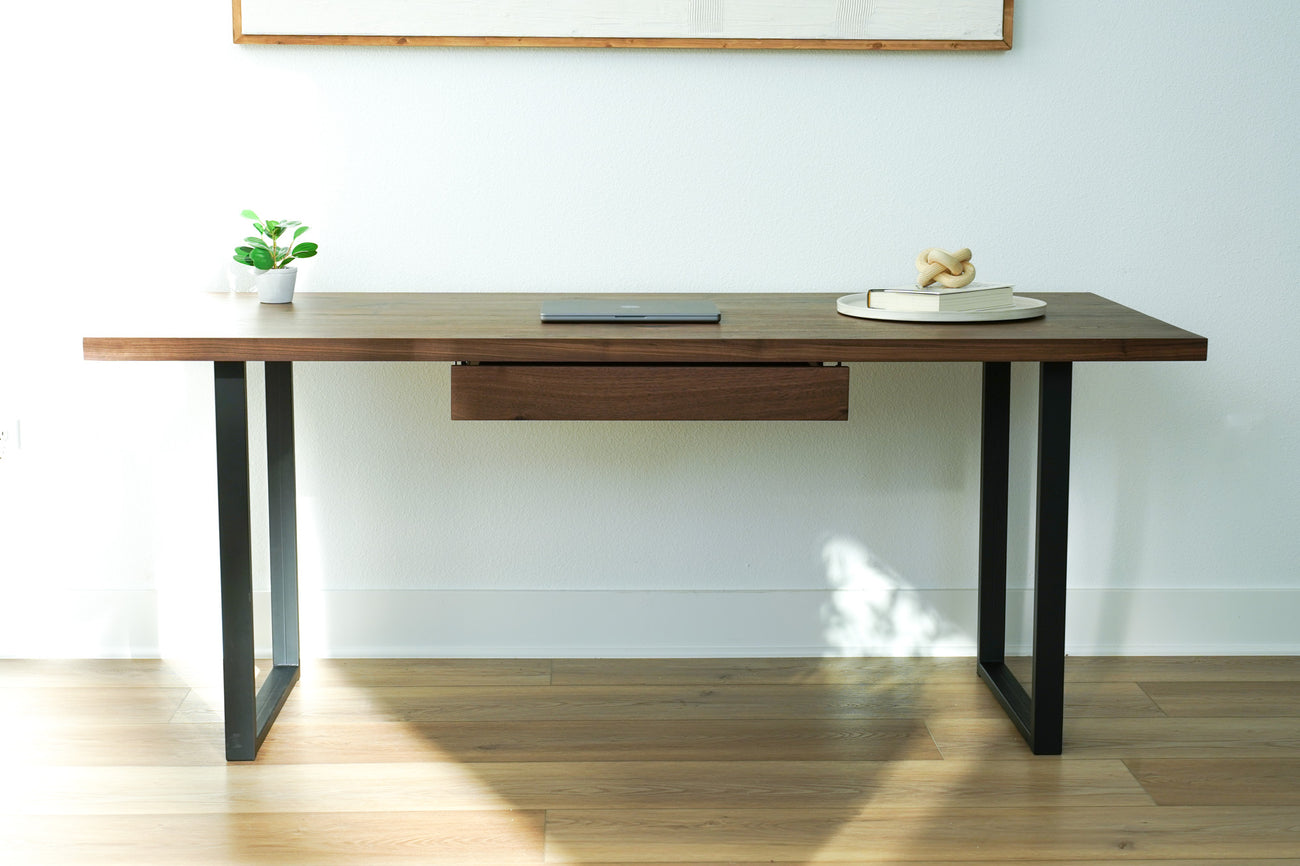 Made from solid black walnut, this desk is both beautiful and durable. Whether it’s for your home office or a professional workspace, it offers the perfect mix of style and practicality, completed with a convenient sliding drawer for seamless organization.