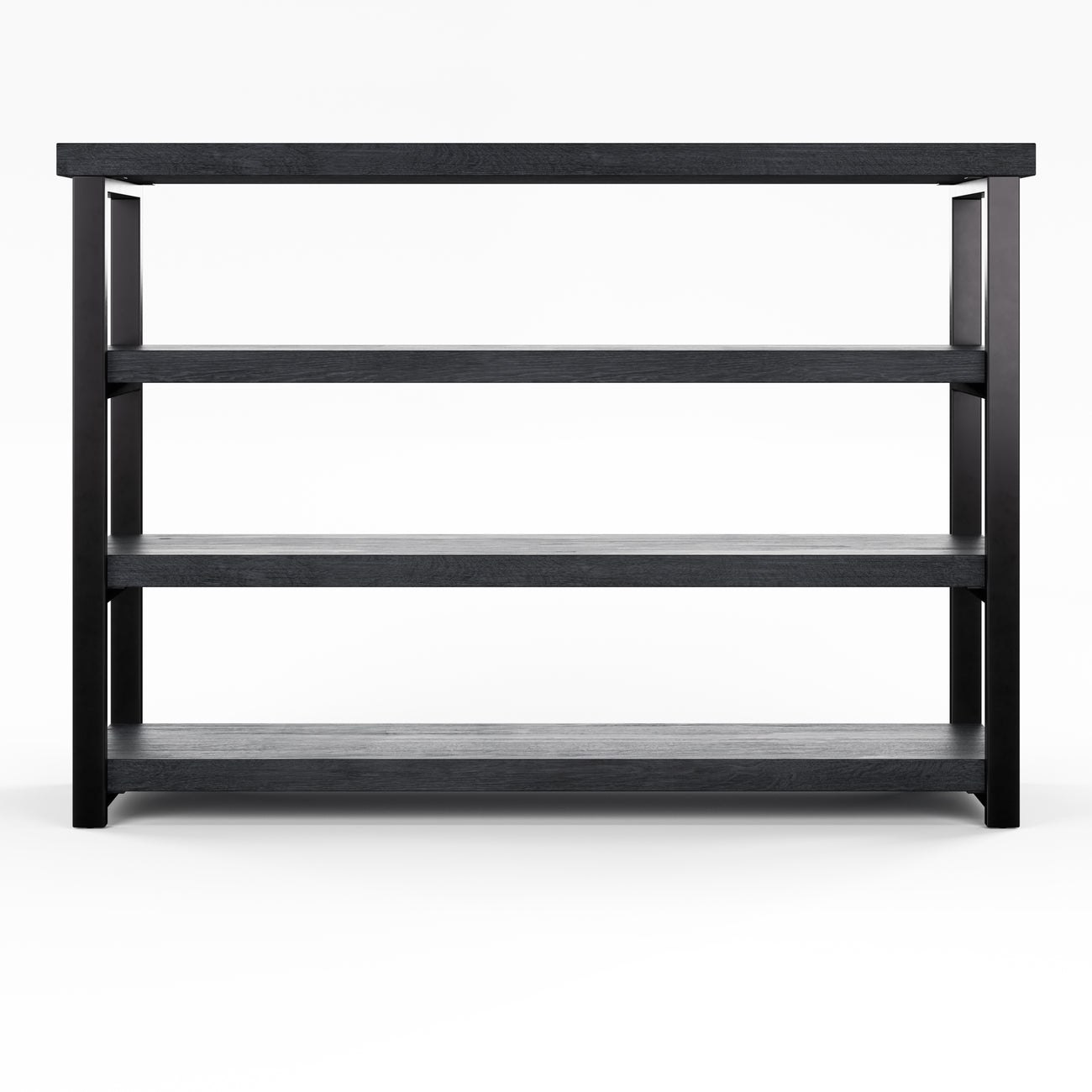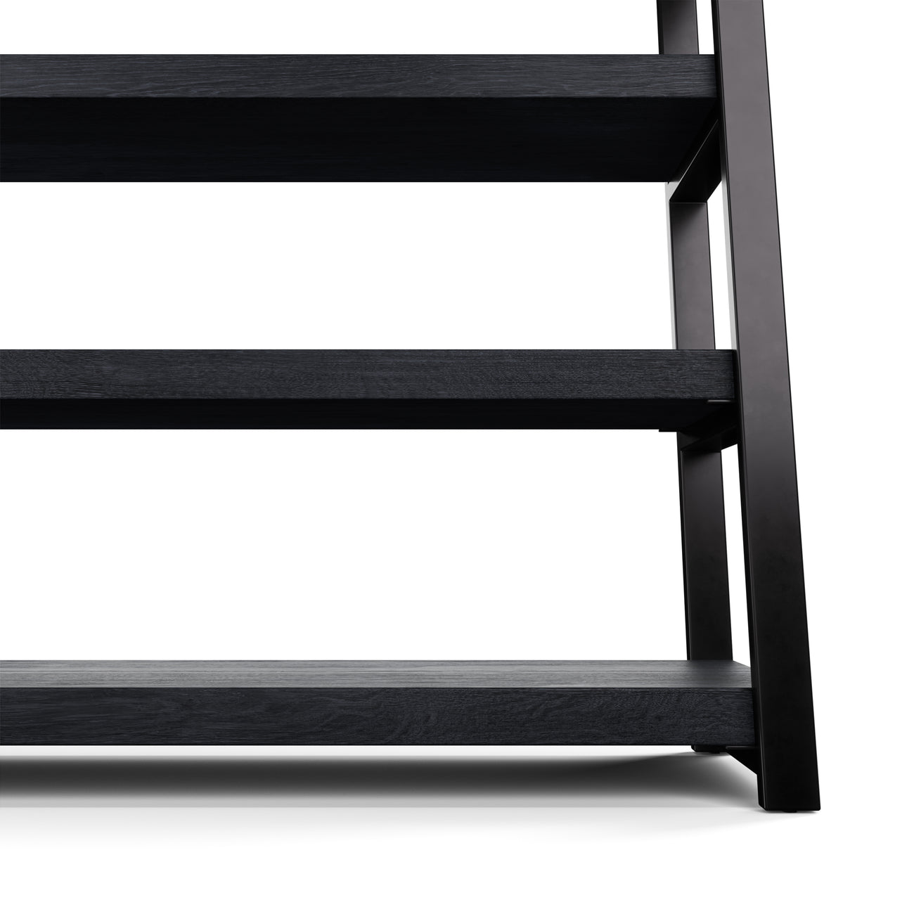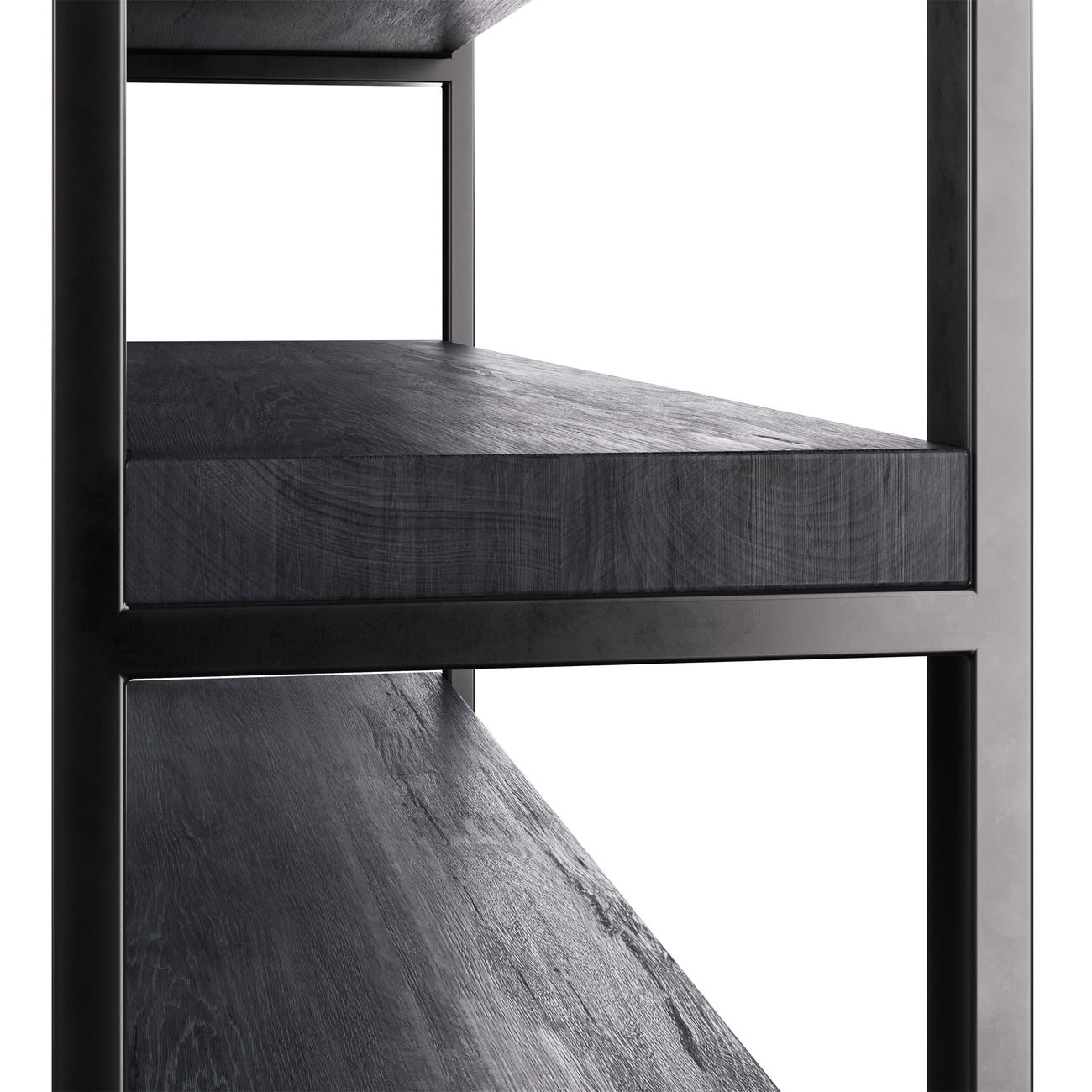 Crafted from solid oak, this bookshelf is finished with a VOC-free, non-toxic, and eco-friendly black finish that highlights the unique grain patterns and textures of the oak, adding character to your space. Proudly made in the USA, this industrial-style bookshelf exemplifies skilled American craftsmanship, ensuring that each piece is both durable and distinctive.