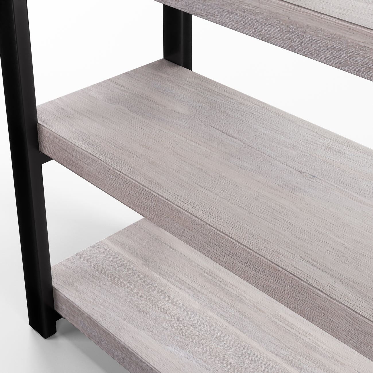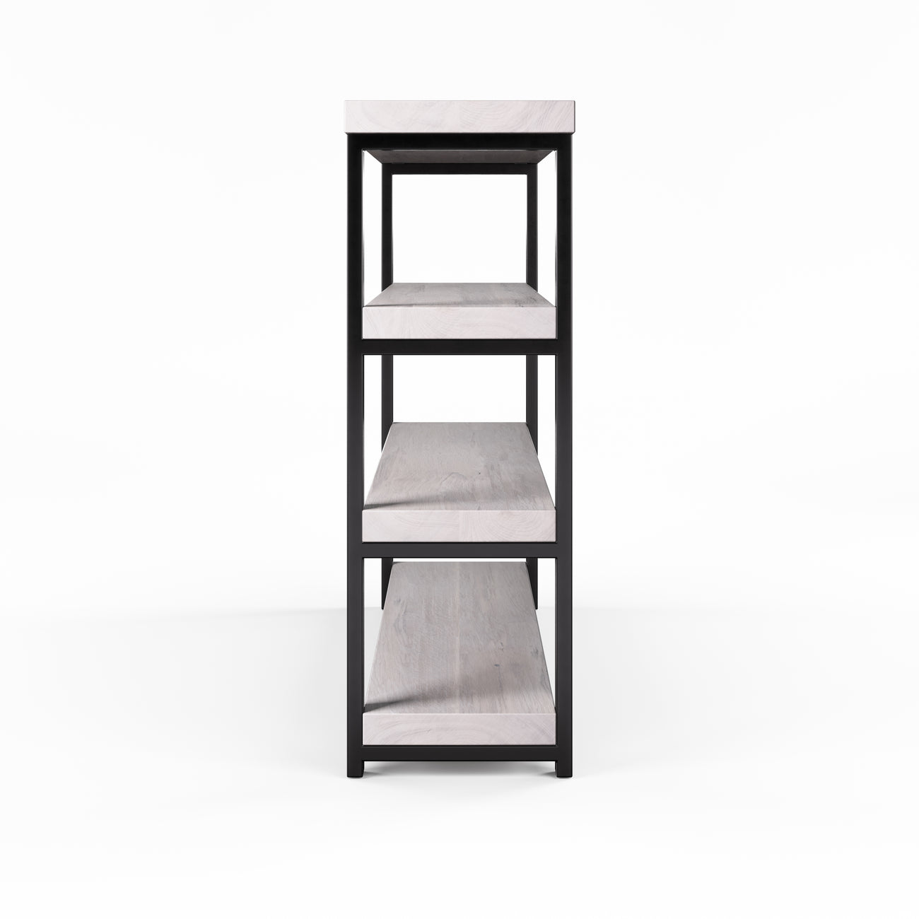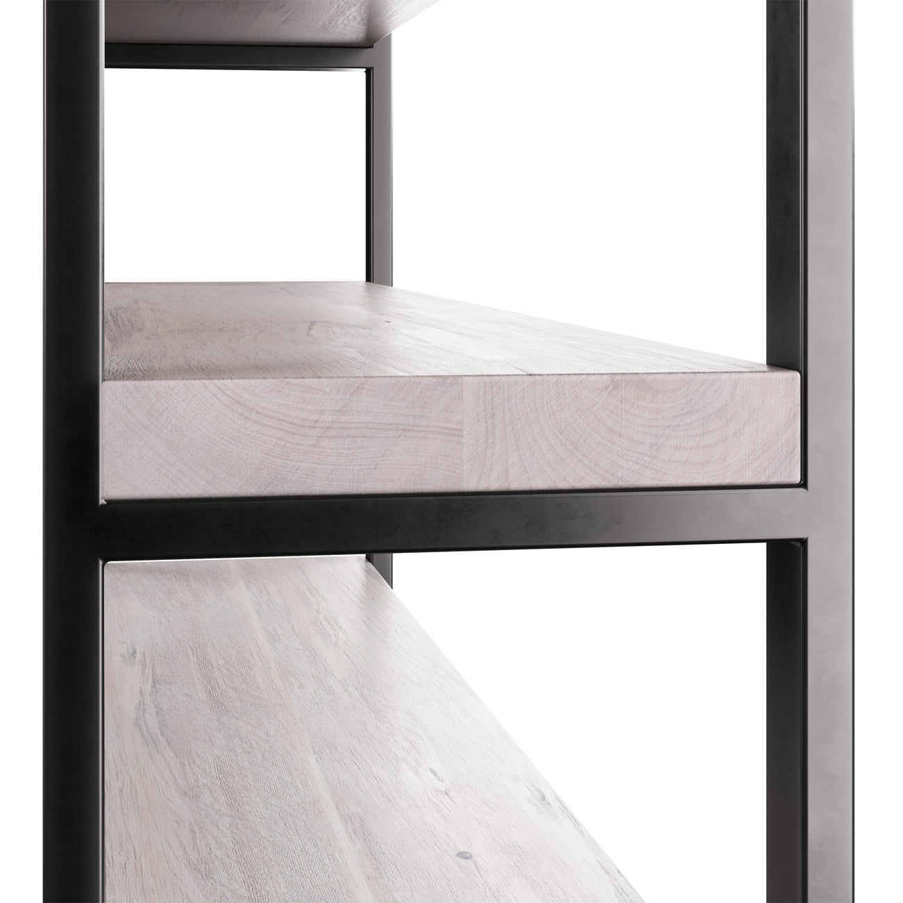 Crafted from solid American white oak, this bookshelf is finished with a VOC-free, non-toxic, and eco-friendly white finish that highlights the unique grain patterns and textures of the oak, adding warmth and character to your space. Proudly made in the USA, this industrial-style bookshelf exemplifies skilled American craftsmanship, ensuring that each piece is both durable and distinctive.