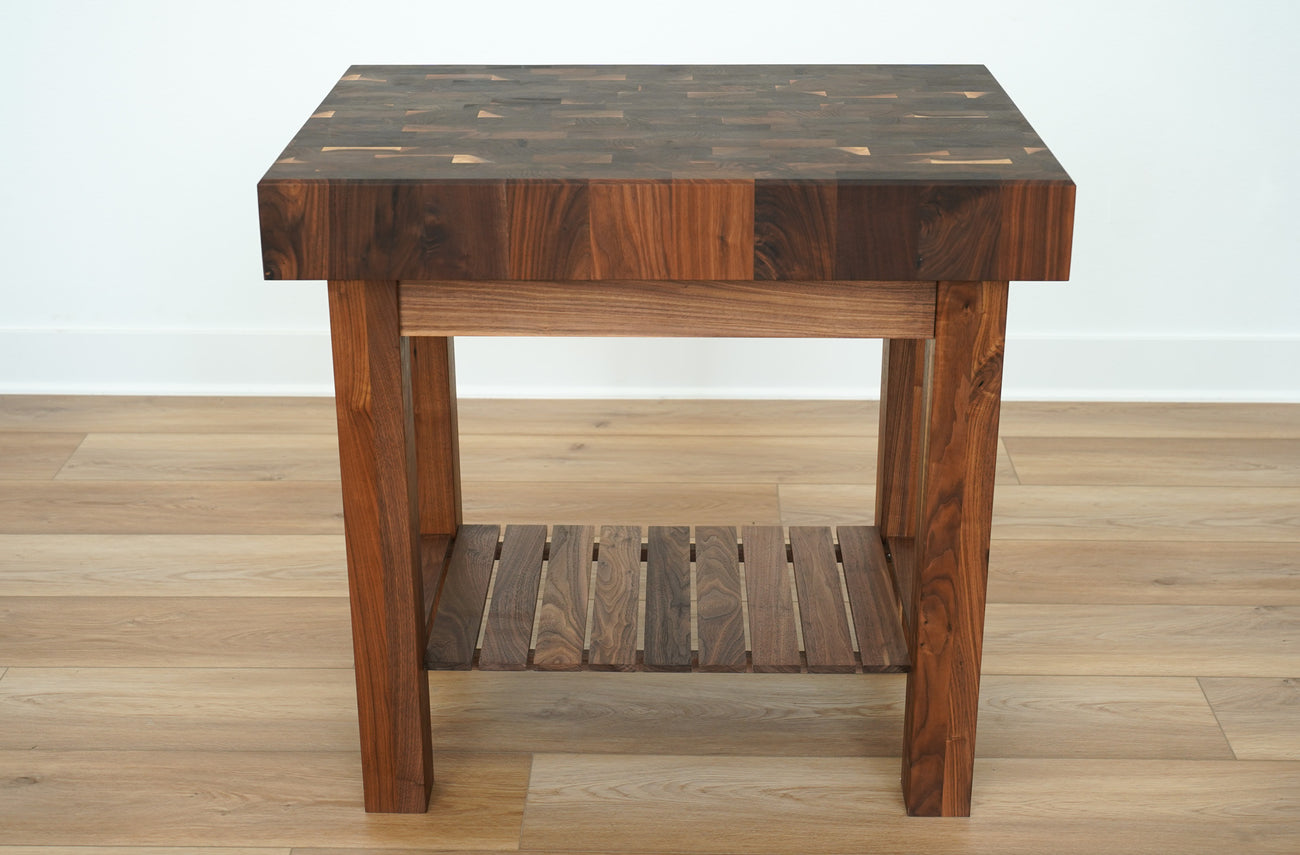 Welcome to the heart of the home, where function meets beauty with our 36" x 24" x 5" Walnut Homestead Block with solid walnut base and Lower Shelf.